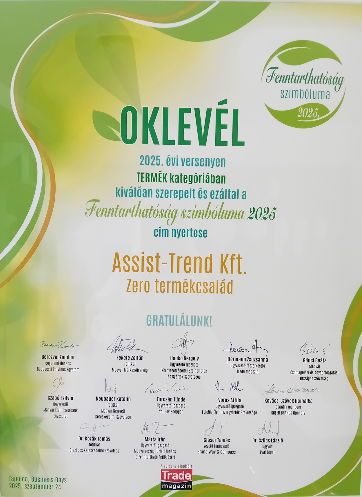 Cégünk, az Assist-Trend Észak folyamatosan törekszik arra, hogy bővítse termékpalettáját – kiemelt figyelmet fordítva az ember- és környezetbarát tisztító- és fertőtlenítőszerekre –, és fejlessze szolgáltatásait, így ügyfeleinknek mindig az elérhető legjobb megoldásokat ajánljuk válaszul a felmerülő igényeikre.